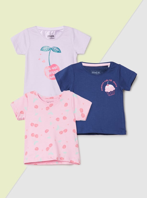 Refresh your everyday essentials with this pack of 3 printed t-shirts, each featuring a classic round neck and half sleeves for all-day comfort.