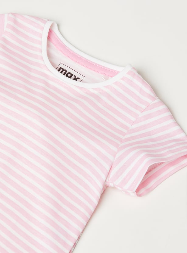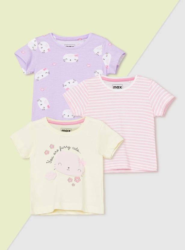 Refresh your casual wardrobe with this pack of 3 printed T-shirts, each featuring a classic round neck, half sleeves, and vibrant patterns that add a pop of personality. Comfortable, versatile, and perfect for everyday wear.