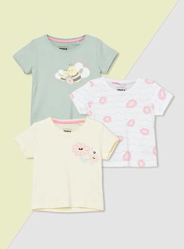 Girls Printed T-shirts - Pack of 3