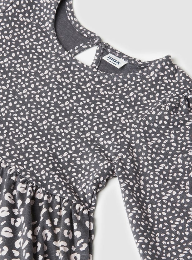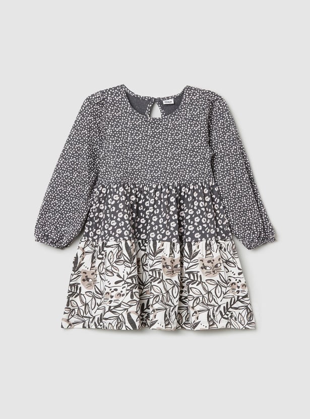 Elevate her collection with this printed A-line dress featuring a tiered profile with prints and full sleeves with cuffs.