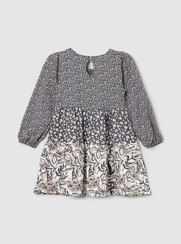 Girls Printed Tiered A-line Dress