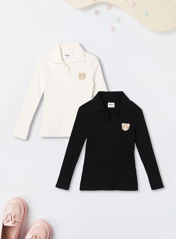 Girls Ribbed Johnny Collar T-shirt - Pack of 2