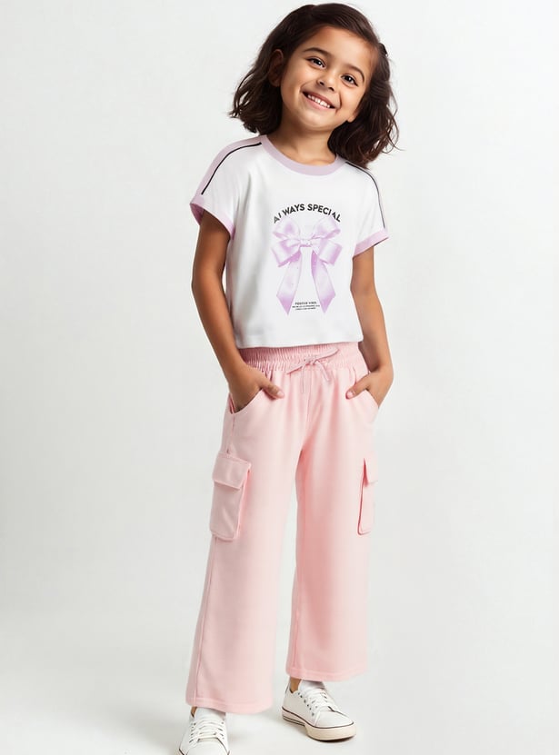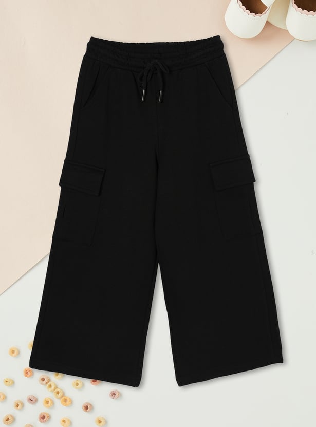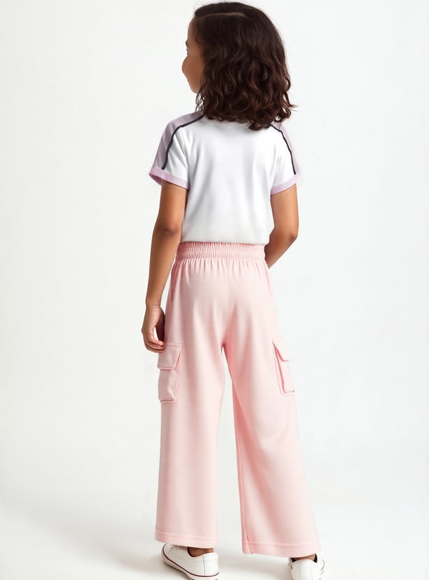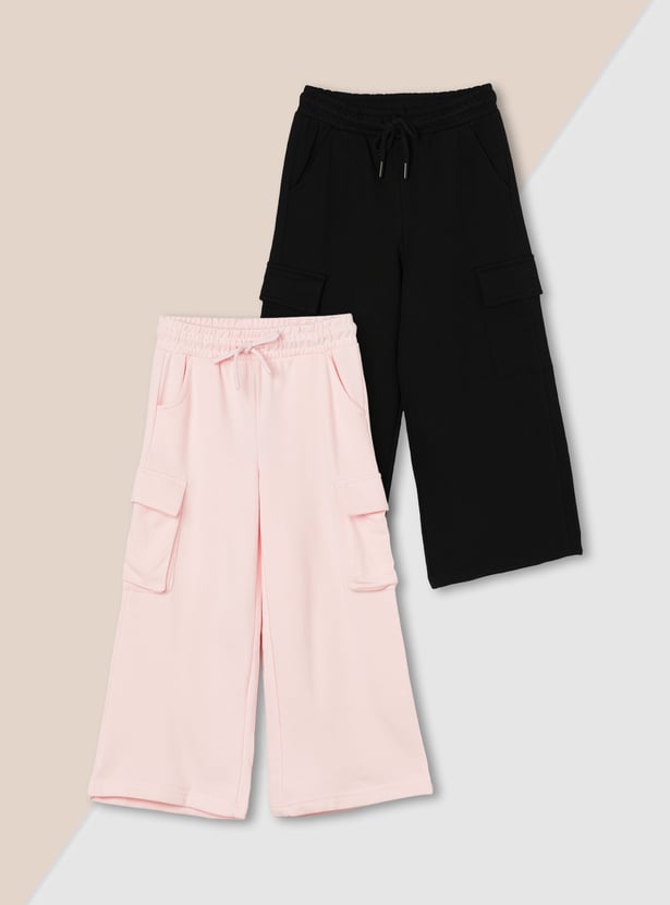 Girls Solid Cargo Track Pants - Pack of 2