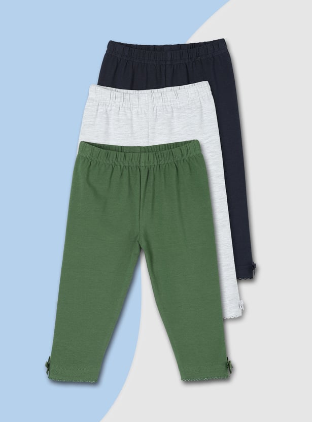 Girls Solid Full-Length Leggings - Pack of 3