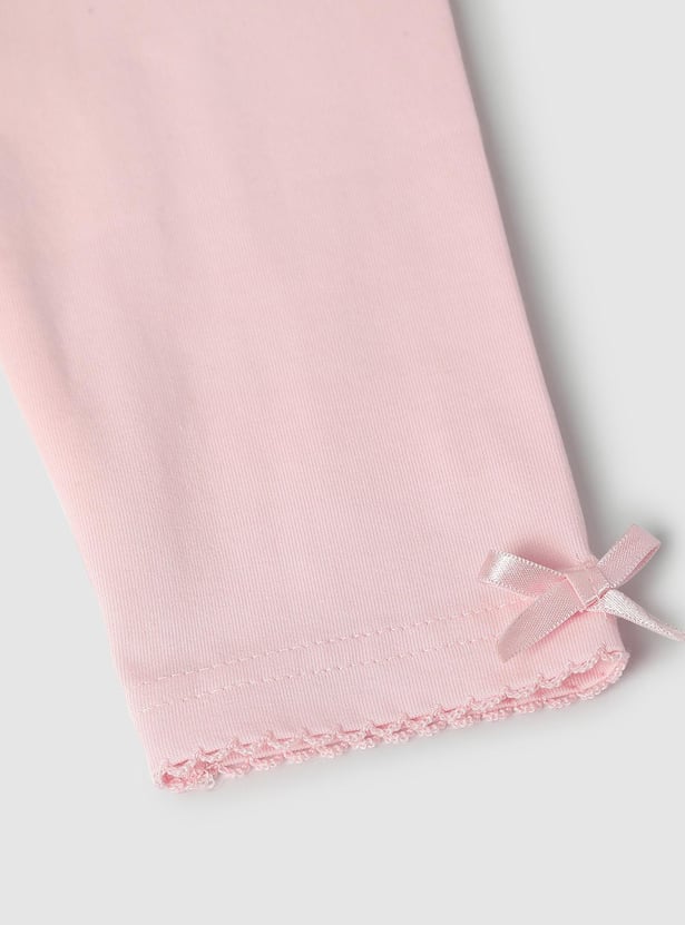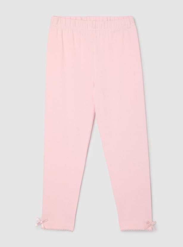 Stay comfy and cute with this pack of 2 knit leggings, featuring an elasticated waist and a sweet bow detail at the hem. Perfect for everyday wear with a touch of charm.