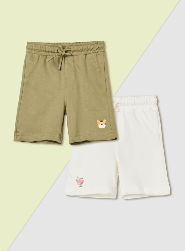 This pack of 2 solid shorts combines everyday comfort with practical style. Featuring a drawstring closure and handy pockets, they offer a relaxed fit perfect for play, lounging, or casual outings.
