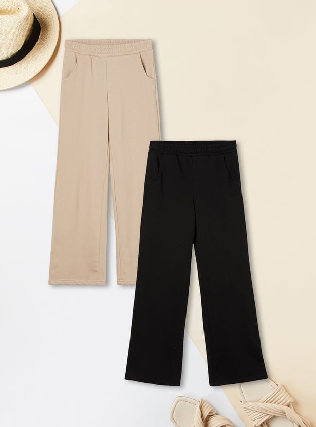 Girls Solid Track Pants - Pack of 2