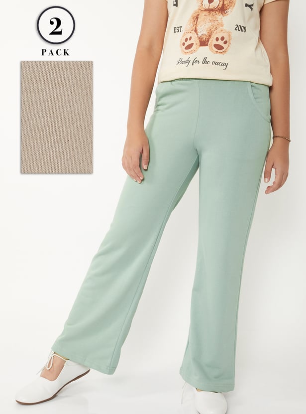 Girls Solid Track Pants - Pack of 2