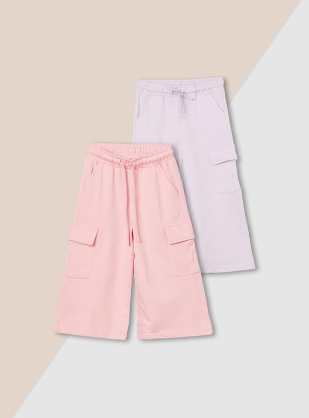 Girls Solid Wide Leg Track Pants