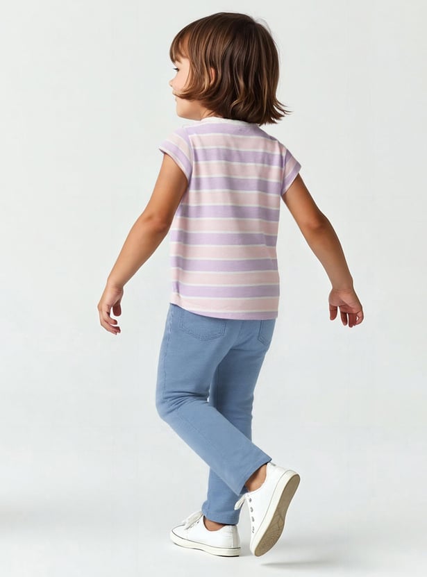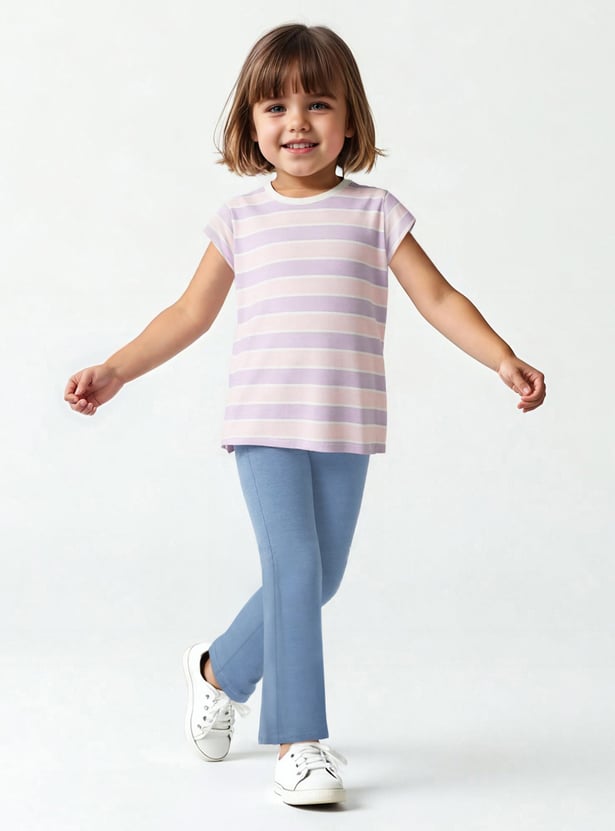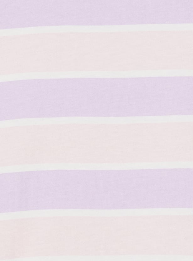 Add a touch of charm to your everyday look with this striped t-shirt. Featuring a round neck, half sleeves, it combines comfort with feminine flair