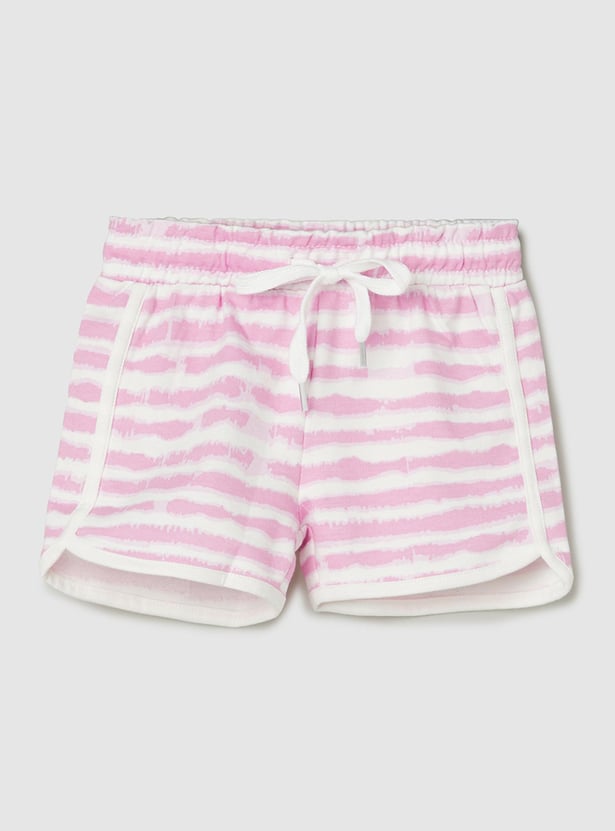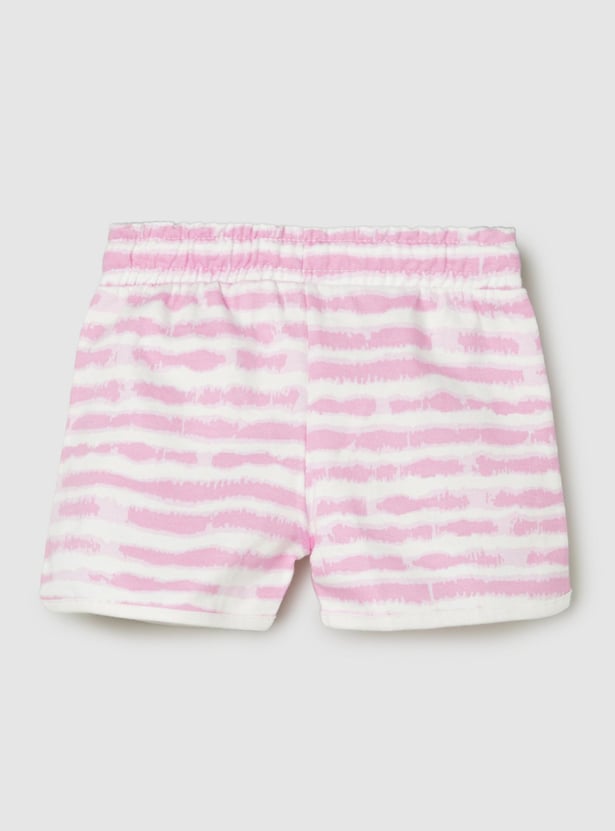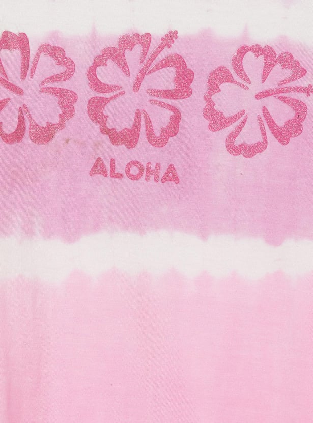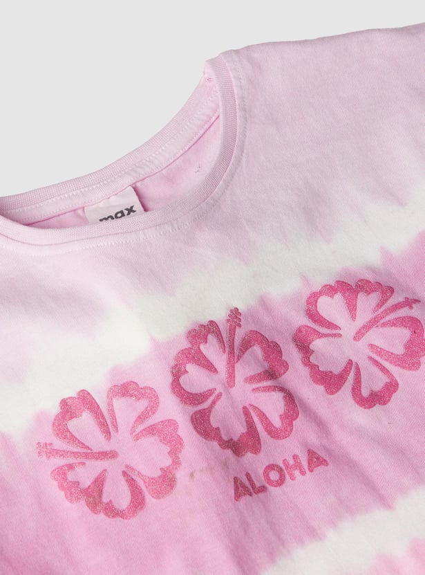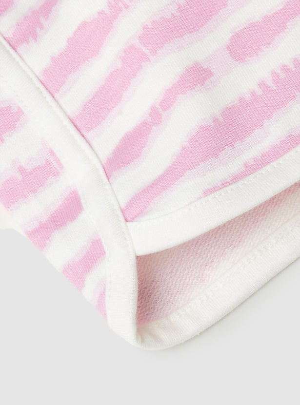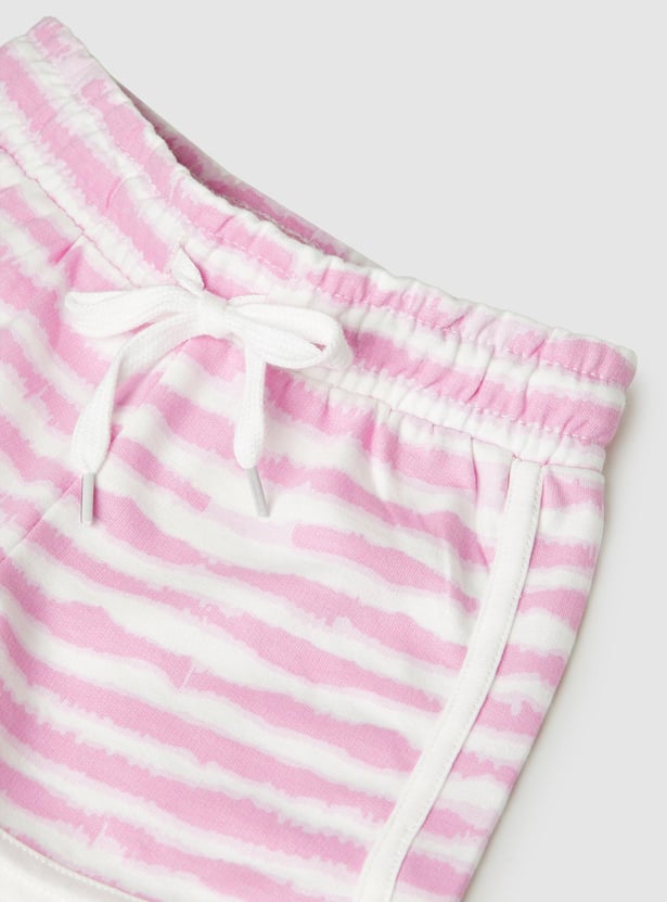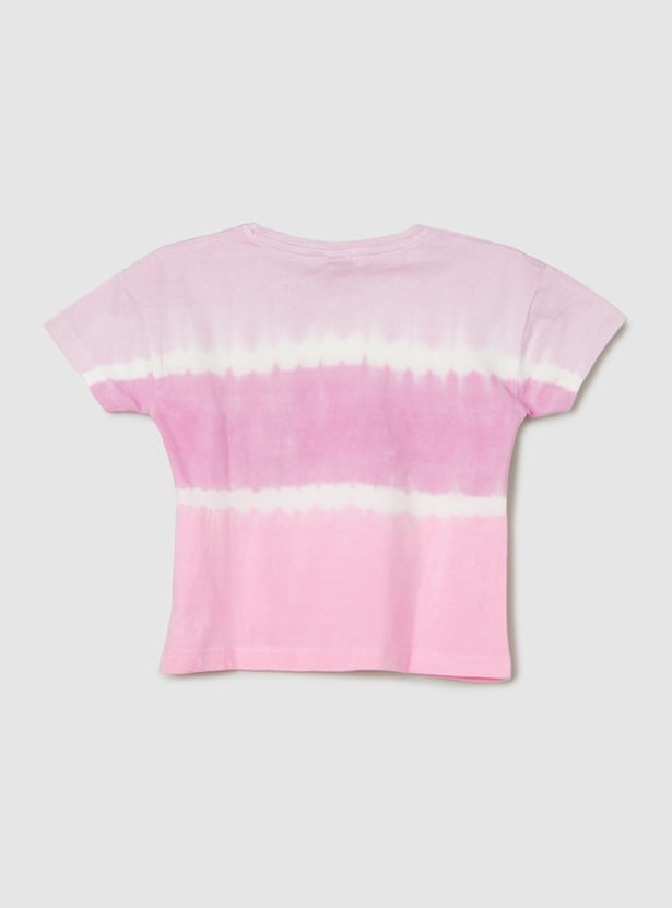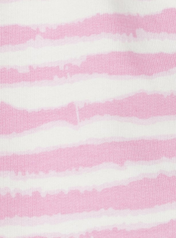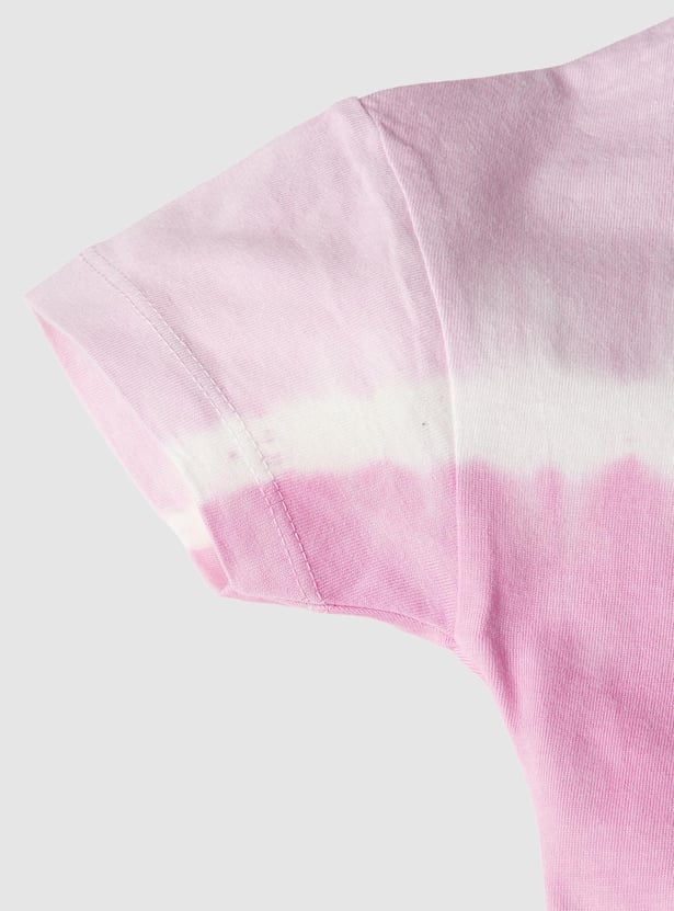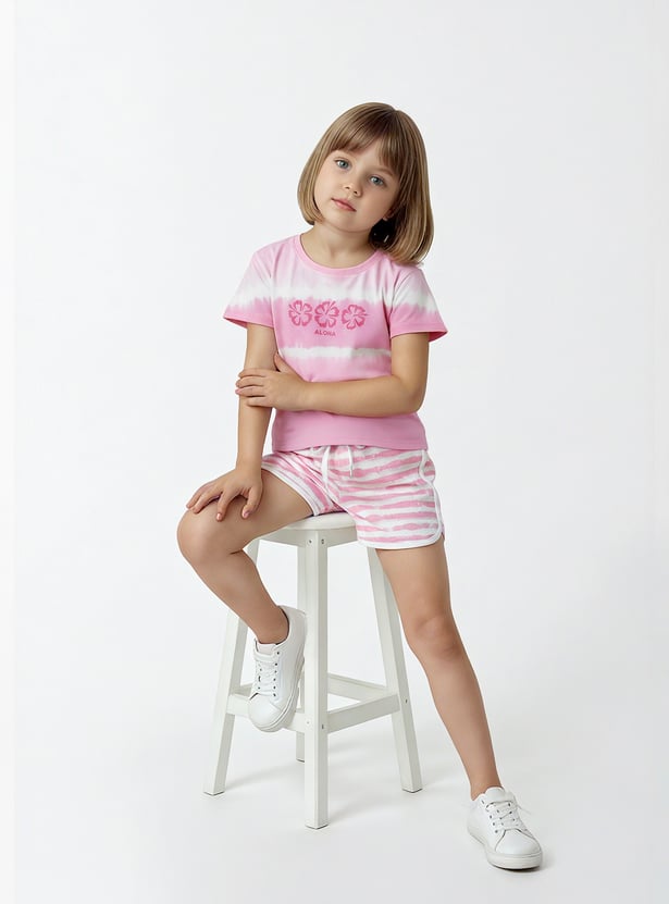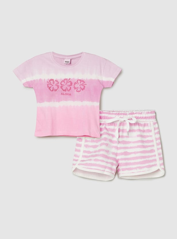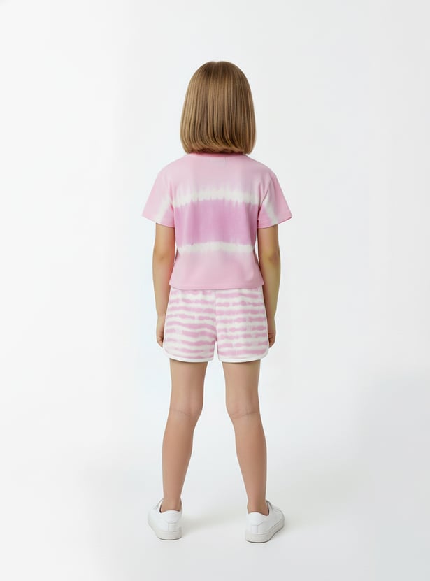 She'll dive into fun and fashion with this pretty set. The tee features a tie and dye pattern, a round neck, prints at the chest, and half sleeves. This pair of shorts has a drawstring waist, contrast trim, and a striped pattern.