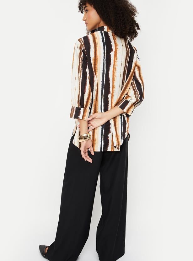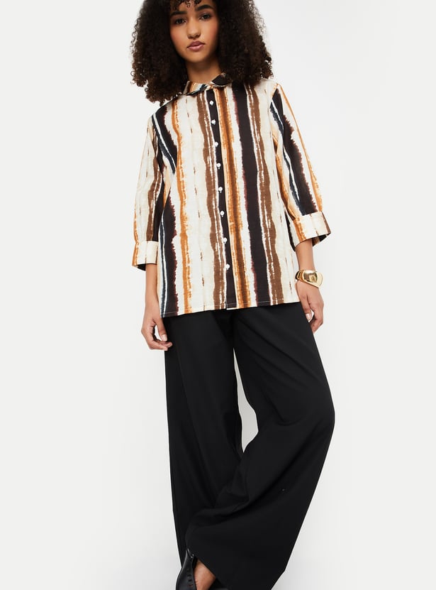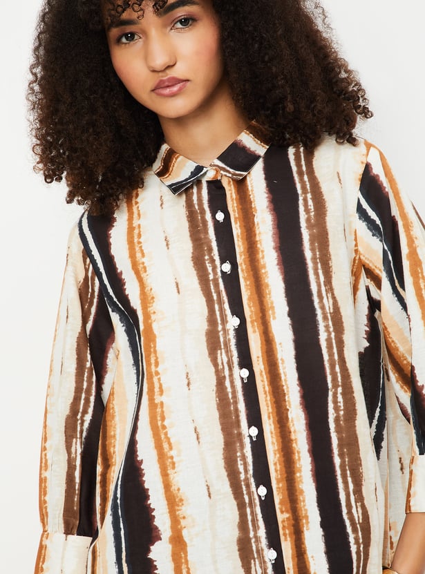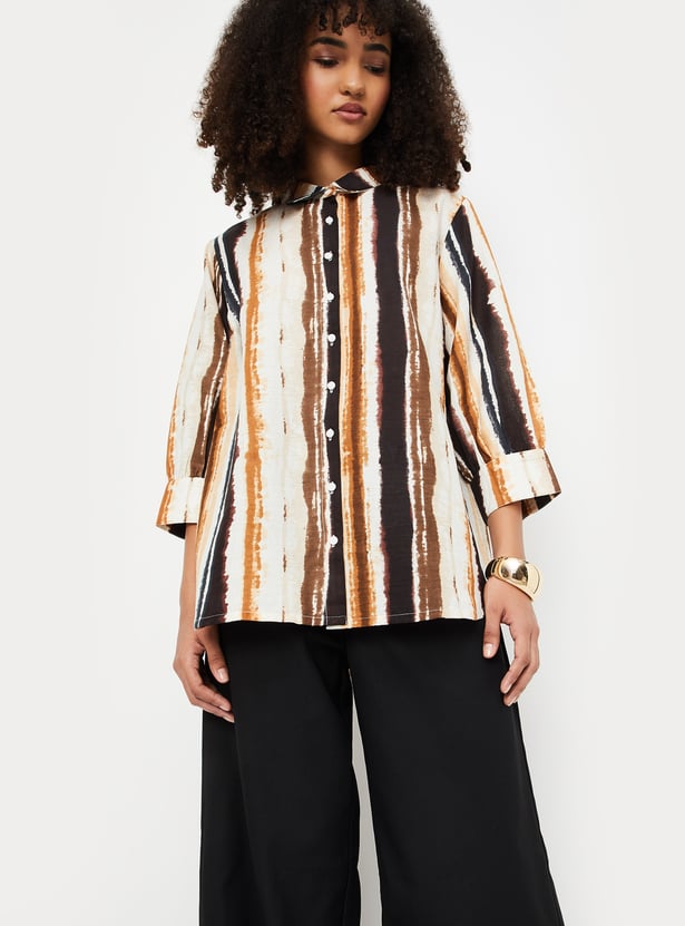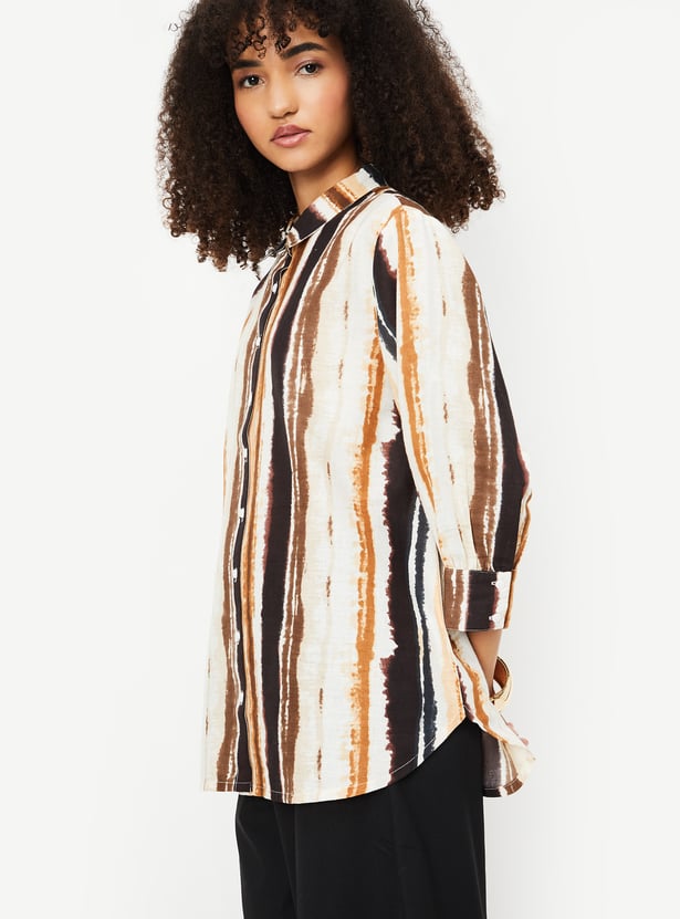 Embrace effortless elegance with this printed tunic. Featuring a spread collar, button placket, and 3/4th sleeves with button cuffs, this tunic combines style and comfort for any occasion.