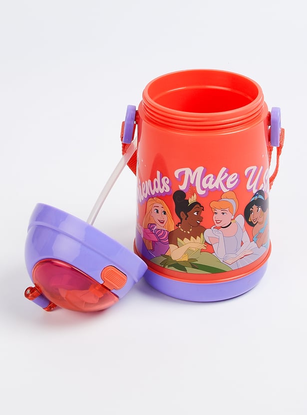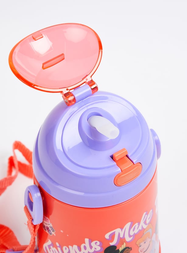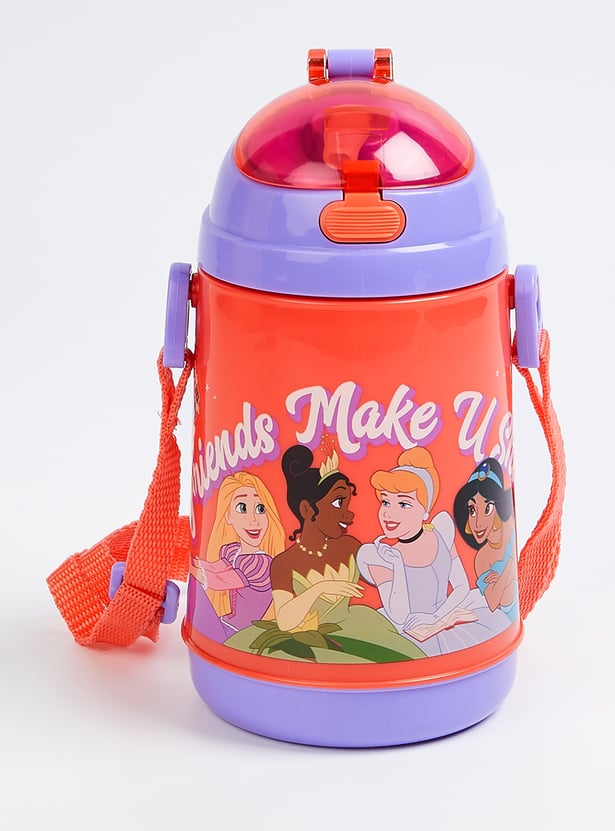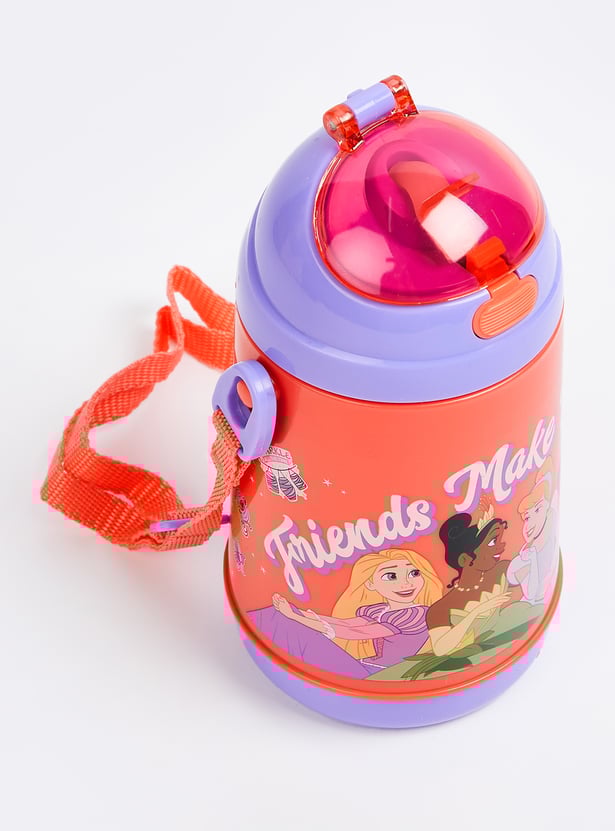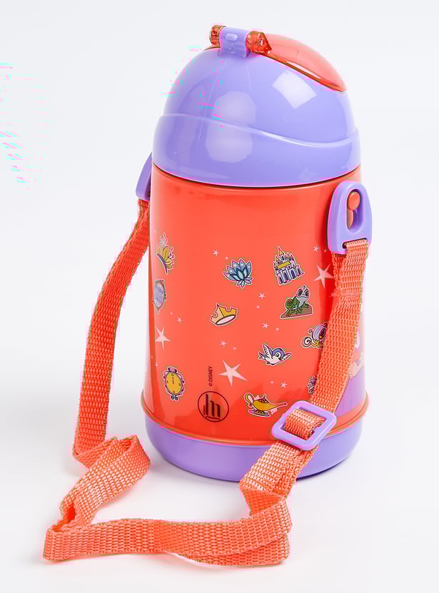 Keep your little one hydrated with this water bottle. It has Disney princess-themed prints that add an element of magic. This bottle has an adjustable strap and a sipper lid for convenience.