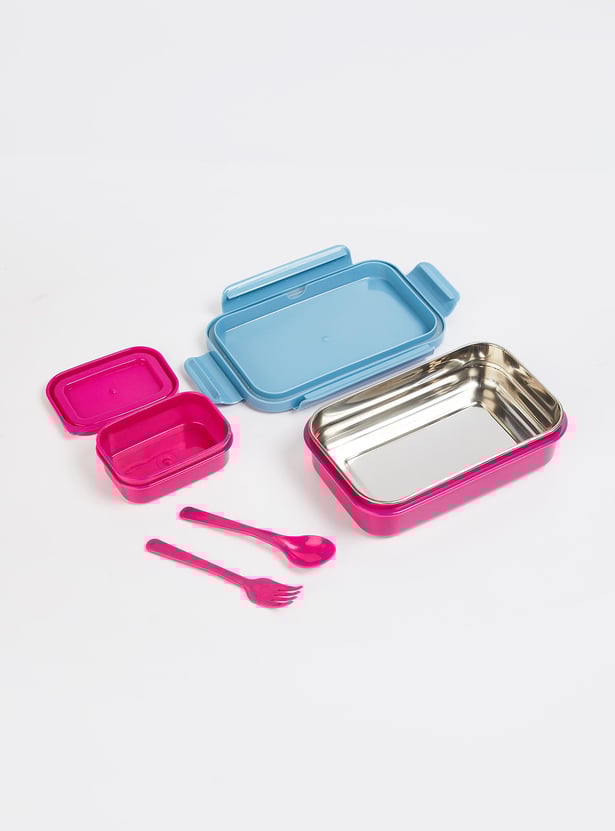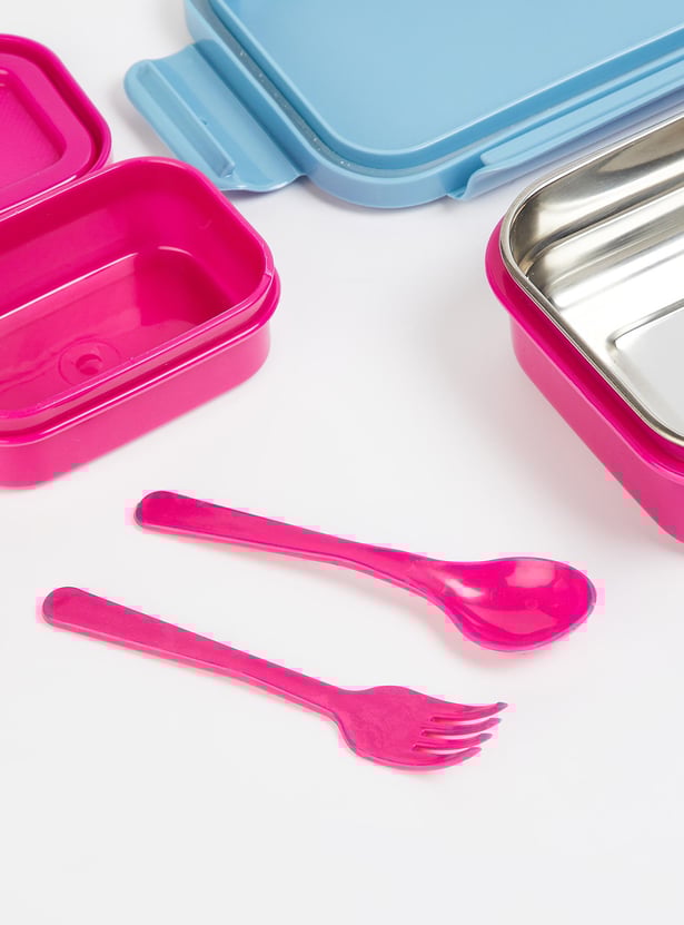 Add a magical touch to their snacks or meals by packing them in this lunch box. It includes a stainless steel interior, a small box, and cutlery. The frozen-themed print adds an element of fun to their lunchtime.