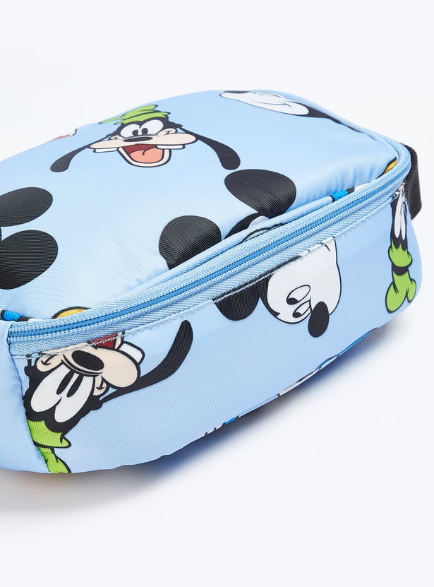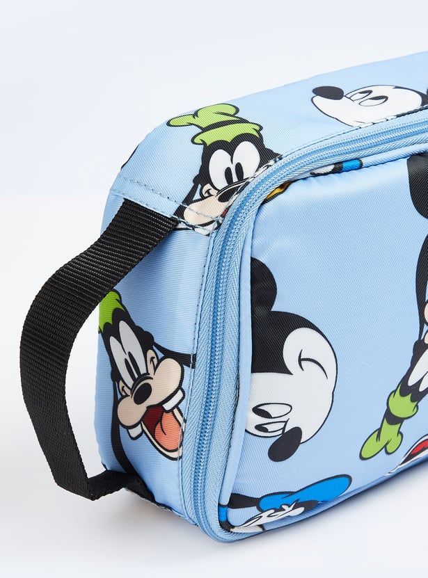 Bring Disney magic to your little one's day with this set. It features Mickey and Friends prints that add an element of fun. The backpack has a front zip pocket, a zip-around main compartment, and adjustable back straps. It includes a pouch with a wrist handle and a zip top. The matching lunch bag completes this set.