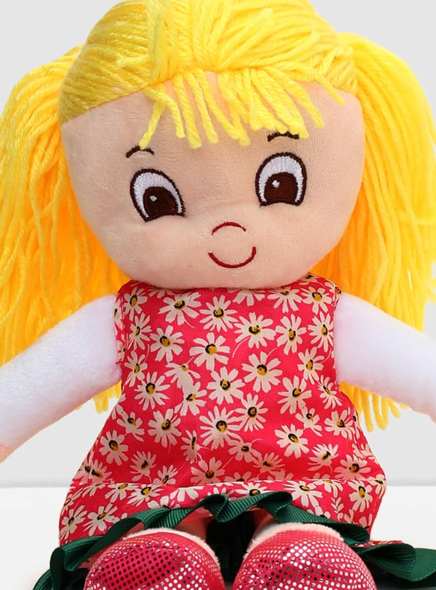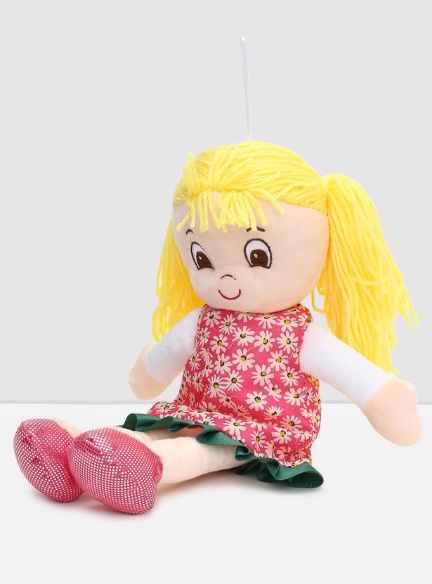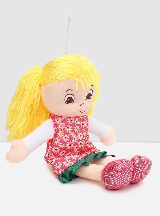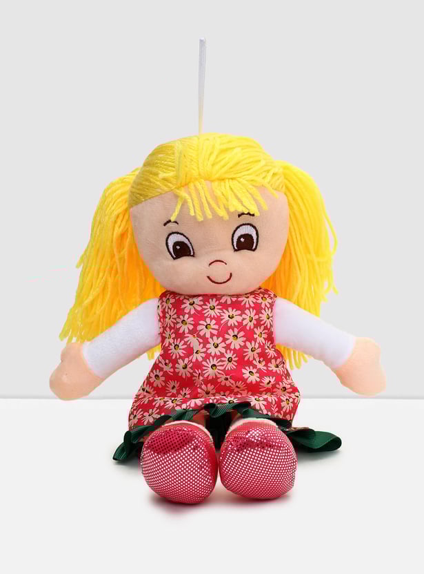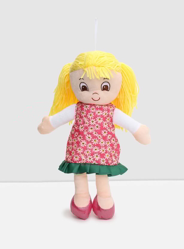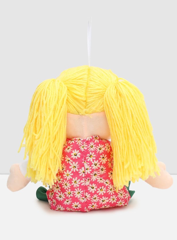 Spruce up your car decor with this soft toy. This girl doll features a floral printed dress with cute ponytails. The loop at the top ensures easy hanging. This car toy doubles up as a playmate for your kid.