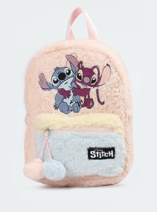 This adorable plush backpack features a Stitch print, making it the perfect companion for your little one's adventures. It includes adjustable straps for comfort, a top handle for easy carrying, and a zip compartment to keep essentials secure, plus a front zip pocket for added convenience. This bag effortlessly combines fun and functionality.
