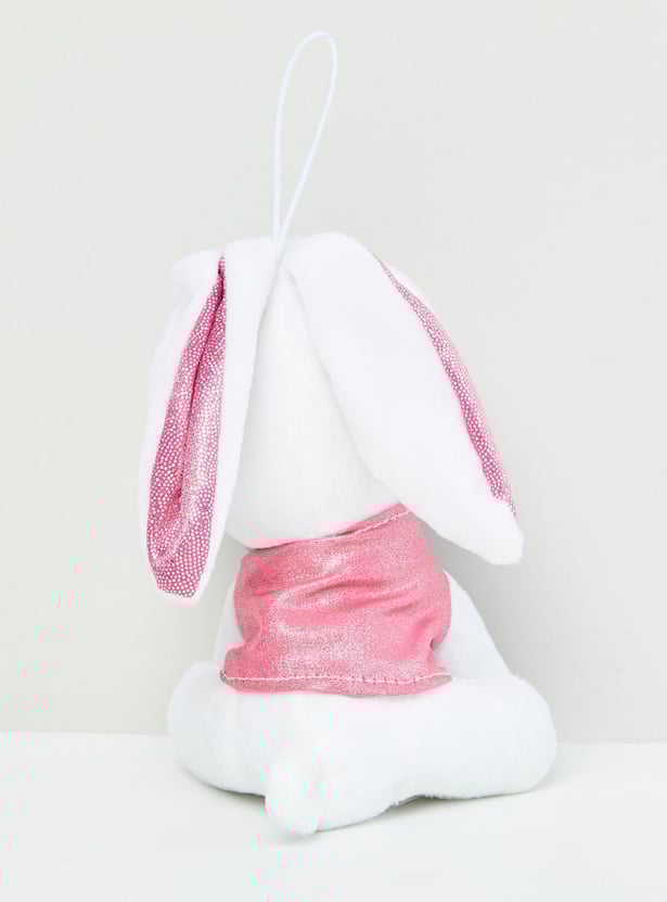 Plush and cute, this bunny toy makes a great addition to your car. It comes with a loop for easy hanging. This durable figurine can also be used as a play toy for children.