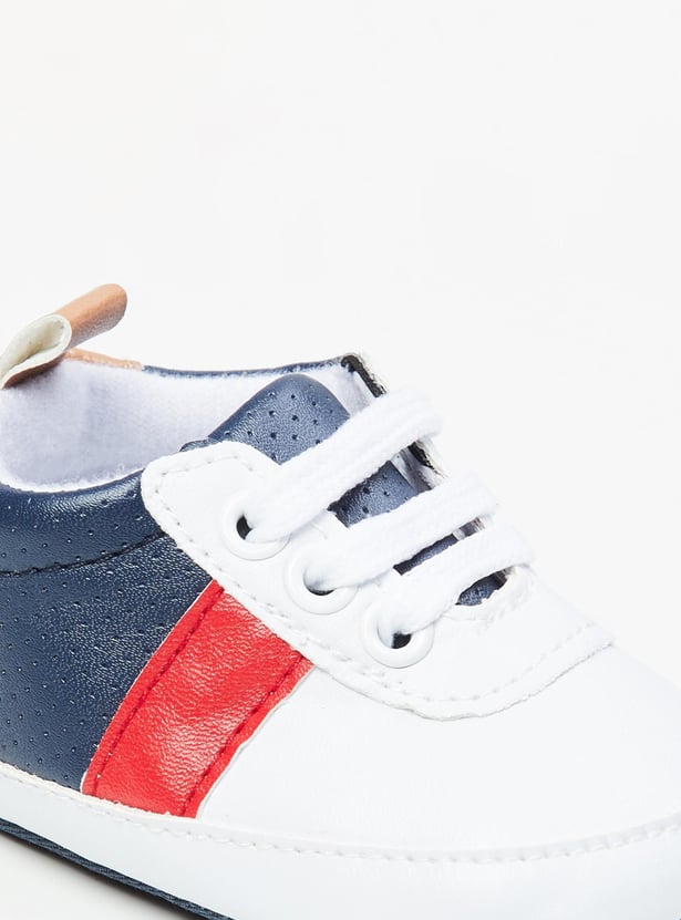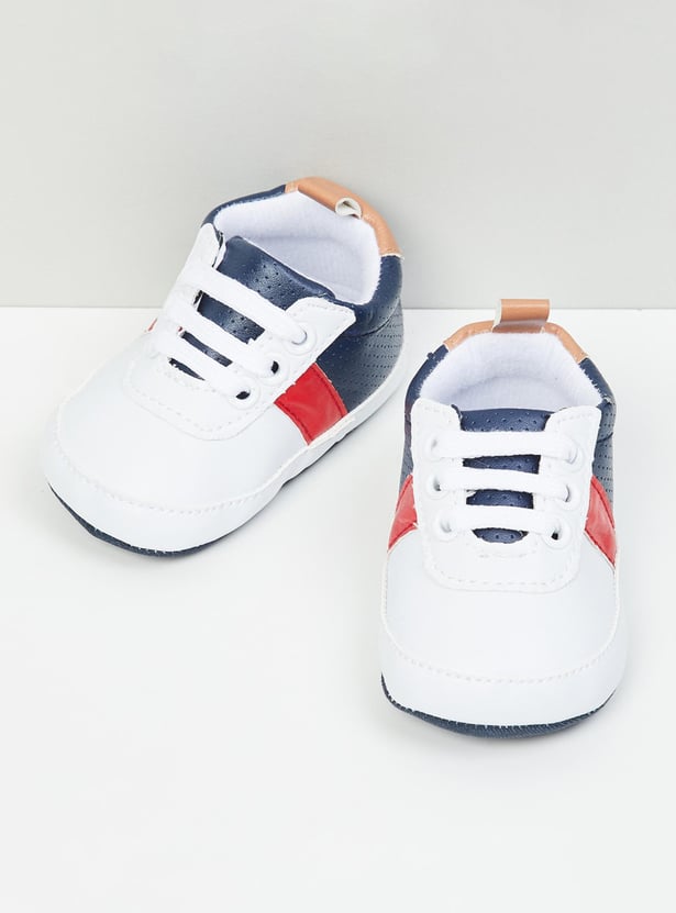 This pair of booties features a colourblocked pattern with a lace-up structure and a rounded toe. The textured soles ensure a superior grip for your little one.