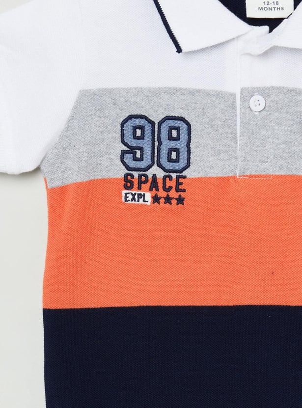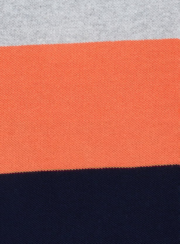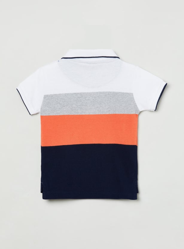 An ideal pick for your little one's casual wardrobe, this colourblocked t-shirt is designed with half sleeves and a polo collar.