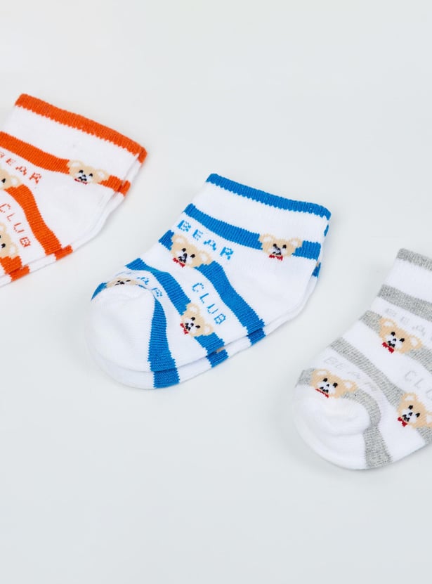 MAX Boys Kids Patterned Ankle-Length Socks - Set of 3 - 0-12 M
