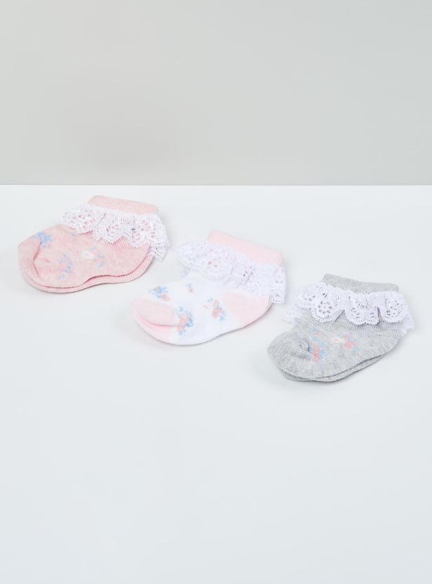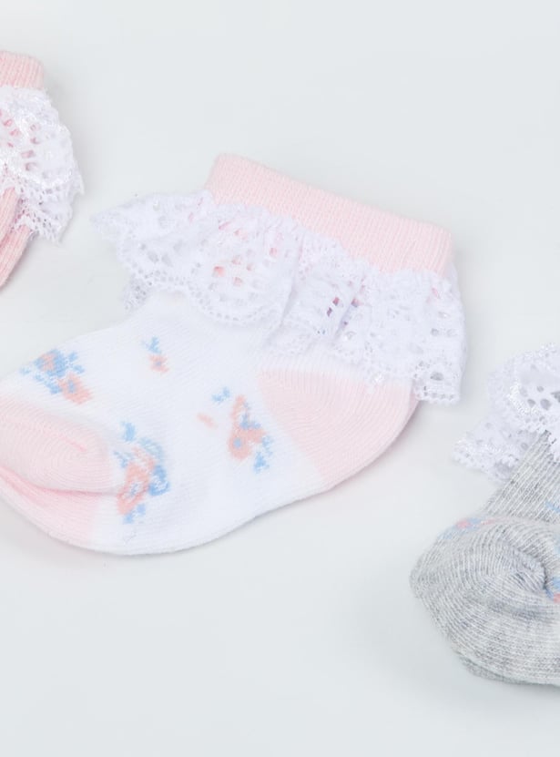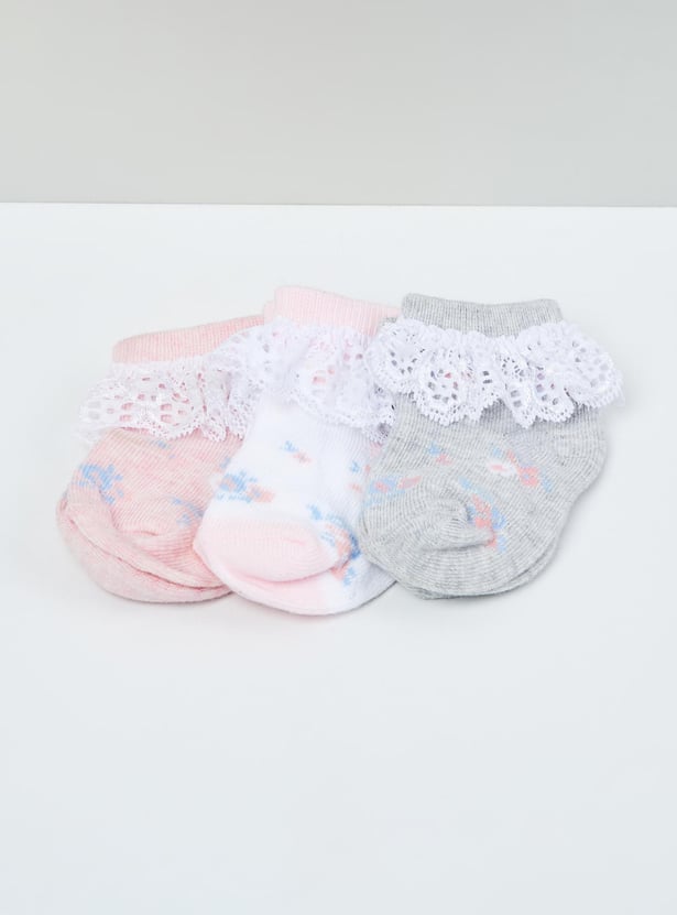 MAX Girls Woven Socks - Pack of 3 - 0-12 M