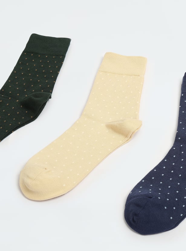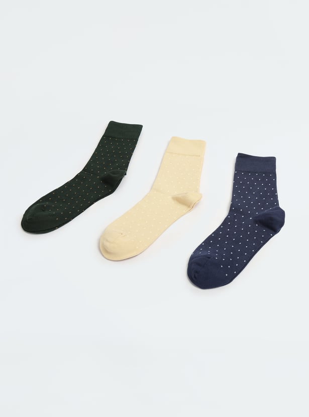 Revitalize your essentials with this sock pack. It includes three pairs in assorted patterns and a crew-length design. Each pair is crafted with a flat-toe seam for extra comfort and a heel tab to prevent slipping.