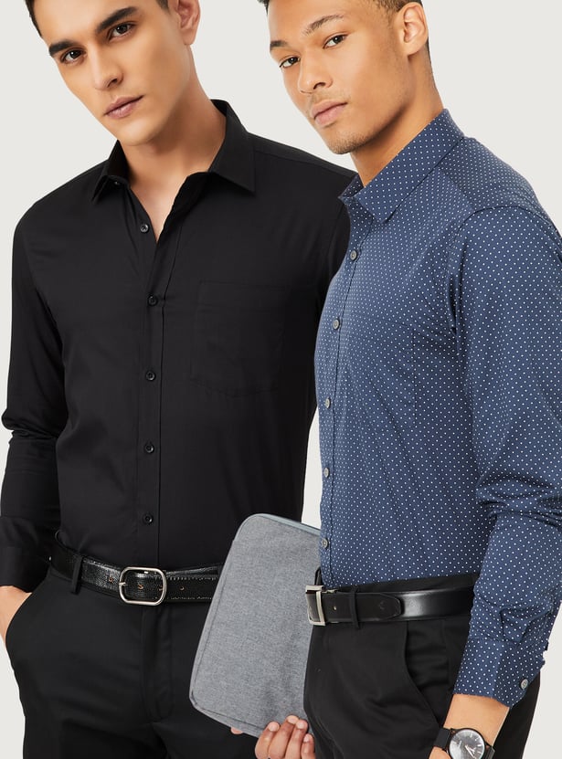 This pack of assorted formal shirts features a spread collar, button closure and full sleeves.