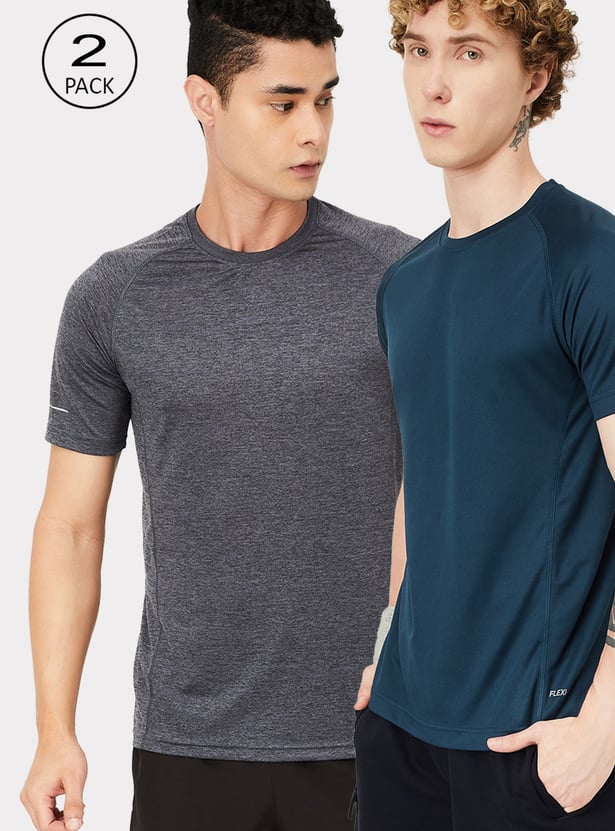 Update your activewear with this assorted pack of 2 t-shirts featuring crew neck designs and raglan half sleeves for easy movement and all-day comfort.