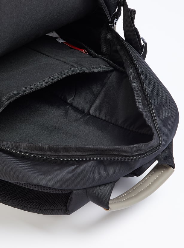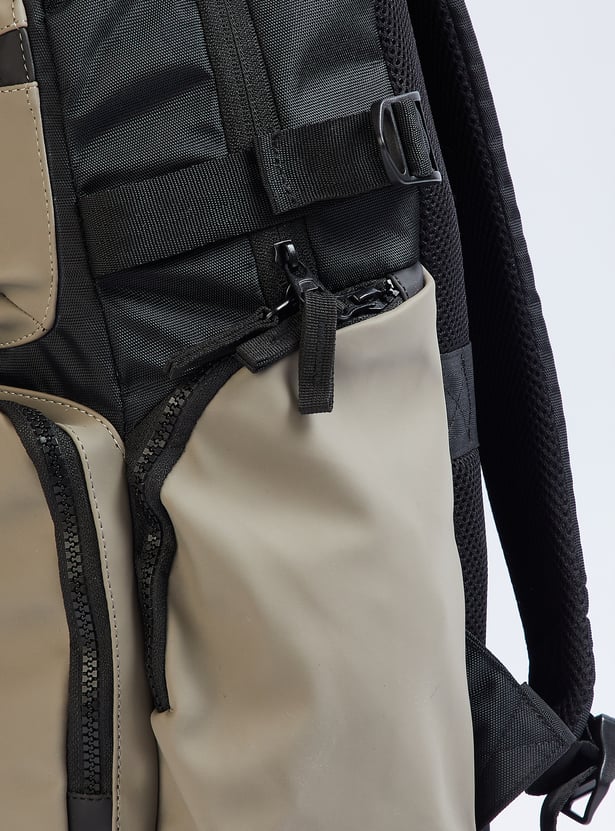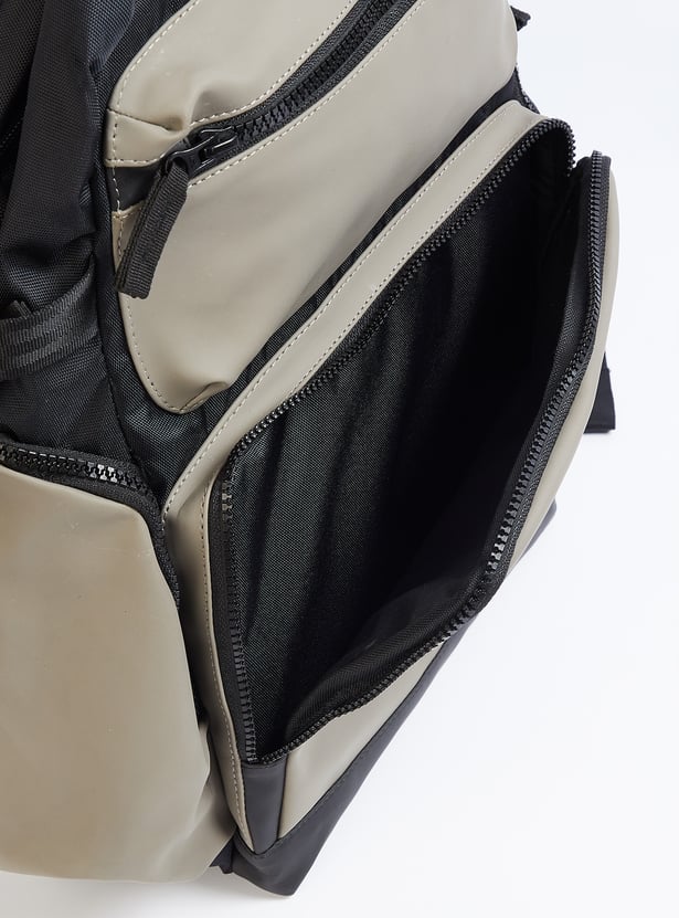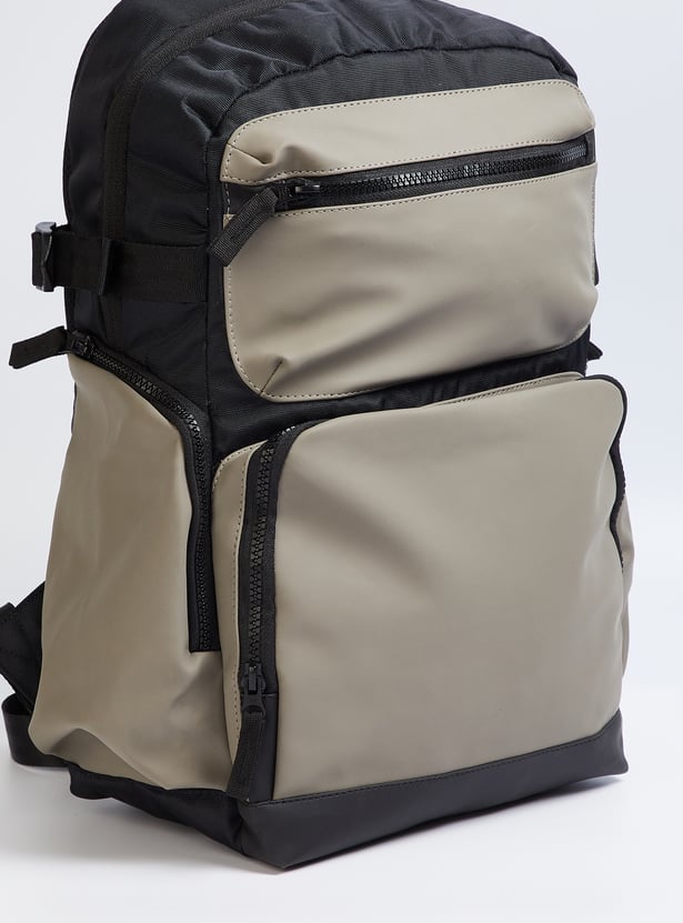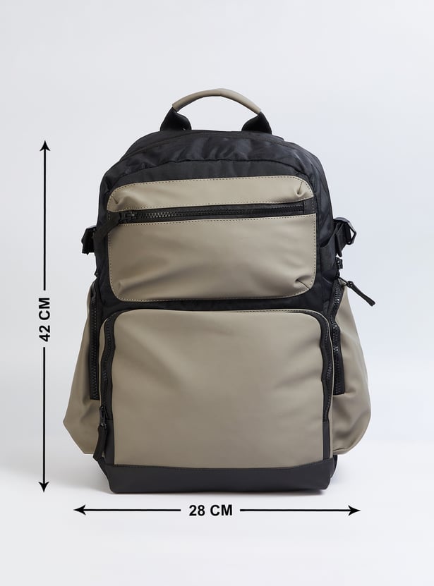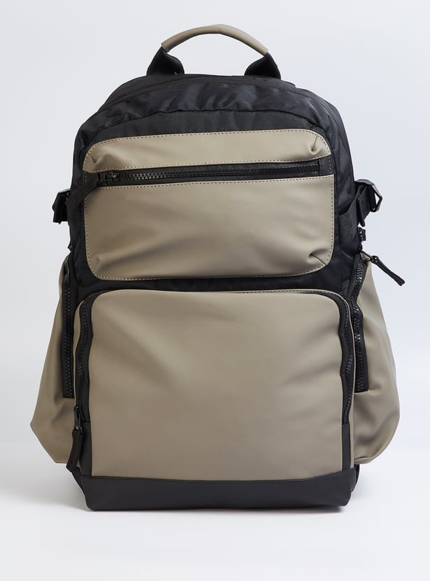 Transition from weekday to weekend in style with this backpack. It features a colourblock exterior, a mesh padded back, side pockets, and adjustable straps. The front and zip pockets enhance convenience, while the main compartment with a zip closure and an interior pocket ensures easy organization.