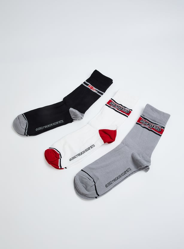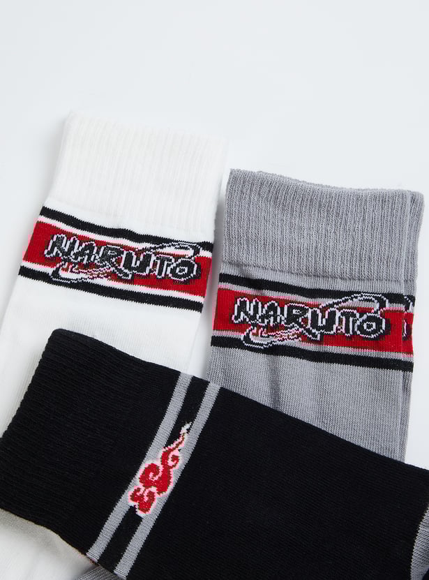 Step into ninja style with this pack of 3 Naruto print crew length socks. Designed for comfort and fandom flair, each pair features iconic prints inspired by the beloved anime. Soft, durable, and perfect for everyday wear.