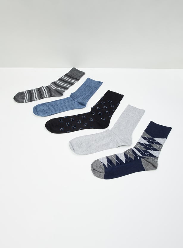 Crafted with a printed surface, this pack of socks features an assortment of prints that ensures outright comfort all day long.