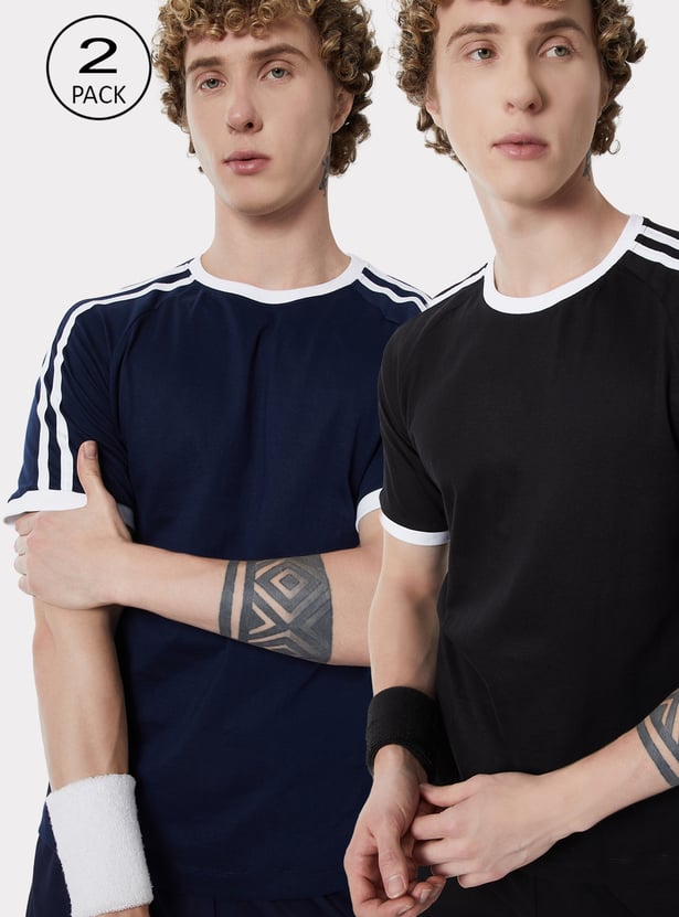 Men Side Stripes Sports T-shirt - Pack of 2