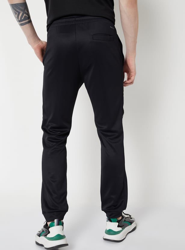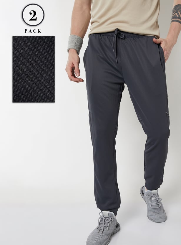 These elasticated joggers feature ribbed hems, drawstrings, insert pockets, and a solid design.