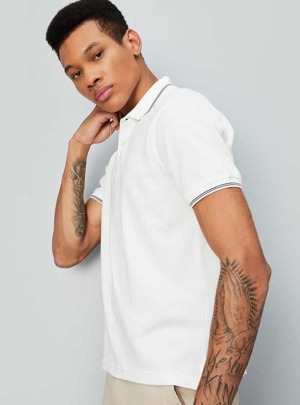 Elevate your casual wardrobe with this pack of solid polo T-shirts. Featuring a classic polo collar, half sleeves, and a straight hem, these T-shirts offer a timeless appeal. The subtle design details add a refined touch to your everyday style.