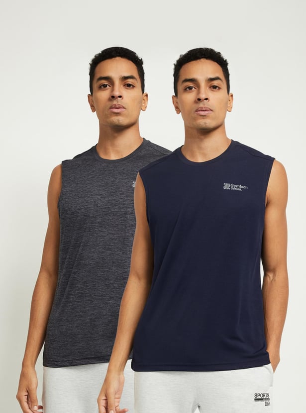 Men Solid Sleeveless T-shirt- Pack of 2