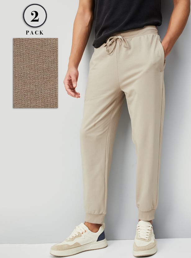 Stay comfortable and active with this pack of 2 solid sports joggers. Designed for everyday movement and relaxed style, this pack includes two assorted tones. Featuring a drawstring waist, side pockets, and ribbed waistband with cuffs, they offer a secure fit with practical functionality.