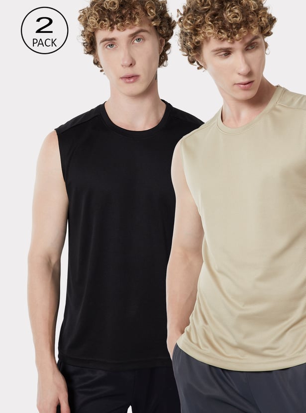 Update your essentials with this pack of solid sports T-shirts featuring a classic crew neck and a cool sleeveless design for easy, everyday athleisure comfort.