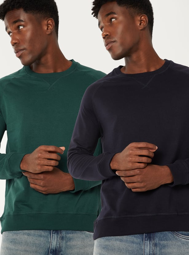 This pack of two solid sweatshirts features a crew neck, full sleeves, and ribbed hems and cuffs for a snug fit. Designed for versatility and durability, they’re perfect for layering or wearing solo, keeping you stylish and comfortable all day long.