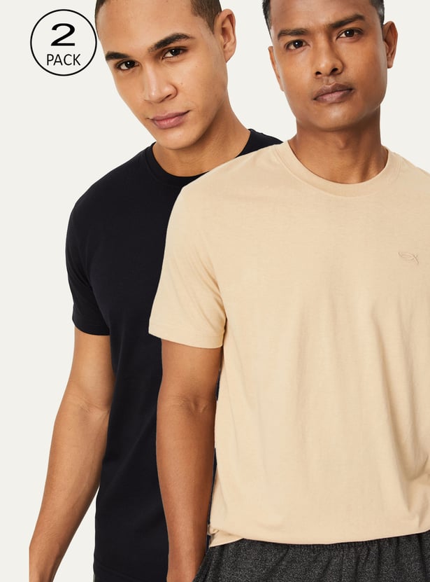 Upgrade your essentials with this pack of 2 solid T-shirts, featuring a classic crew neck and half sleeves. Soft and breathable, they’re perfect for everyday wear.