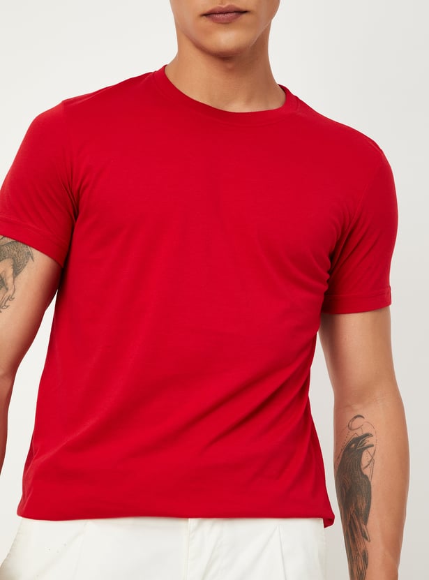 Experience style and comfort with this lounge T-shirt in pack of 3 featuring a crew neckline, solid surface, and half sleeves, offering a perfect blend of fashion and relaxation.