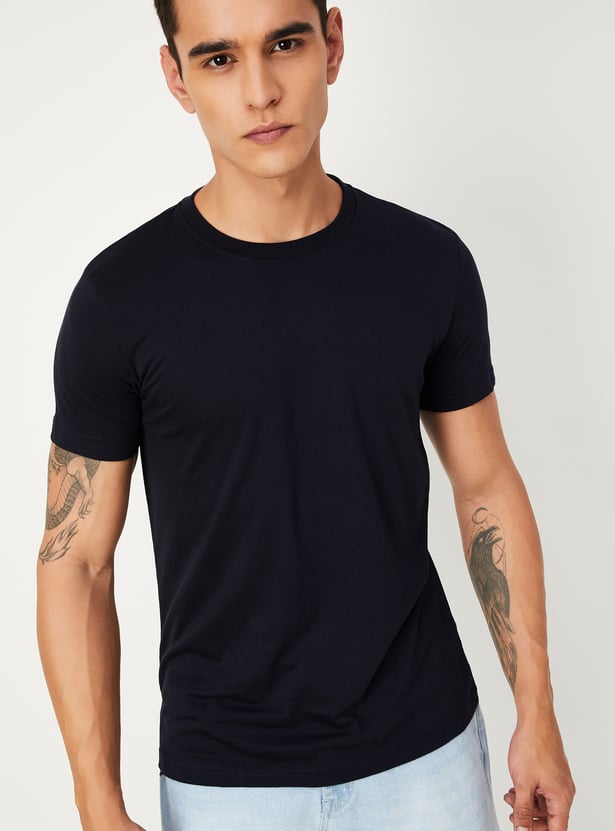 Experience style and comfort with this lounge T-shirt in pack of 3 featuring a crew neckline, solid surface, and half sleeves, offering a perfect blend of fashion and relaxation.