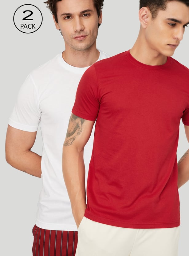 Add variety to your casual wardrobe with this pack of two printed T-shirts. Featuring a classic crew neck, half sleeves, and a straight hem, these tees offer all-day comfort with a playful touch of style.