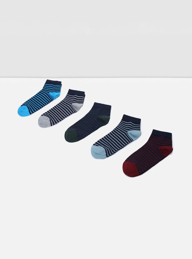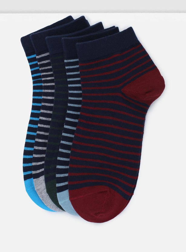 Accessorize your outfits with this set of socks. Designed in an ankle-length profile, this set includes 5 pair of socks that features assorted stripes, ribbed cuff and arch support.