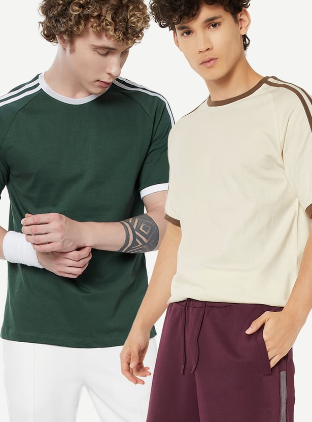 These t-shirts have shoulder stripes, crew necks, half sleeves, and straight hems. Designed in regular silhouettes, these t-shirts are versatile.