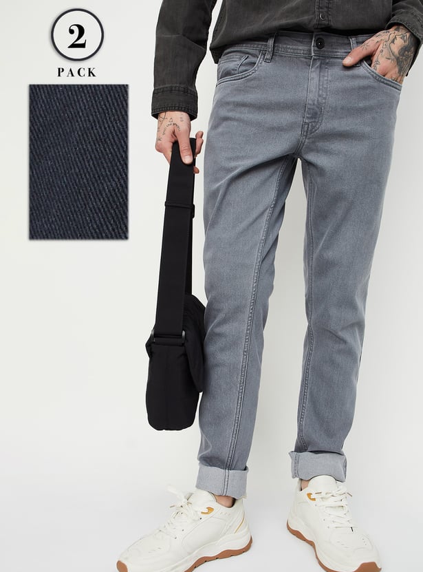 This pair of skinny-fit jeans is thoughtfully designed with a classic 5-pocket construction. They feature a practical button fly closure and washed detail.