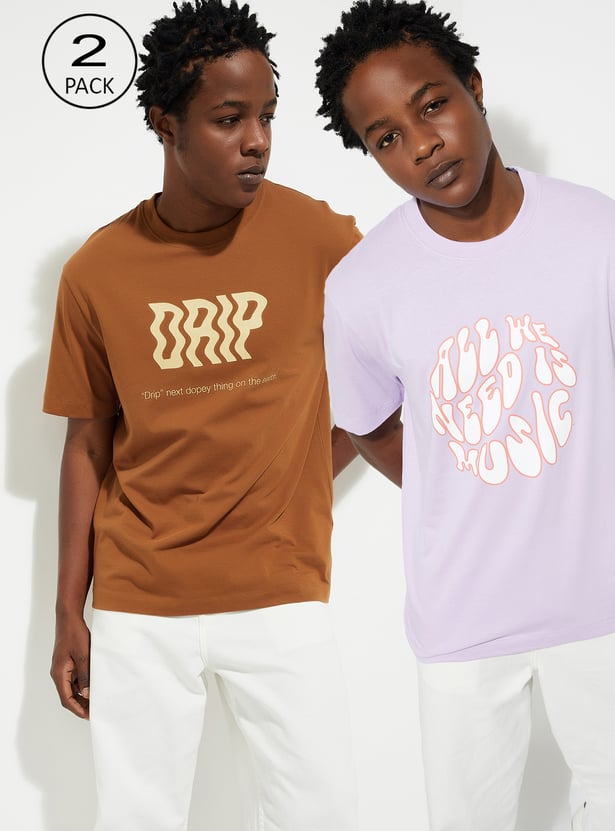 URB_N Men Graphic Print T-shirt - Pack of 2