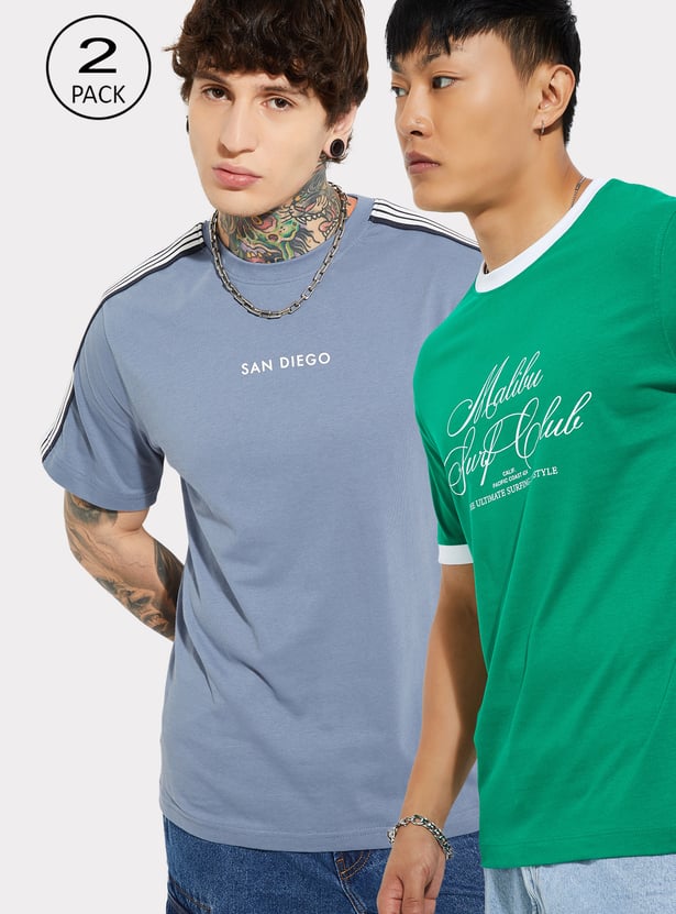 This pack includes two printed T-shirts crafted with a classic crew neck and half sleeves, each showcasing cool styles that add fresh personality to everyday basics.