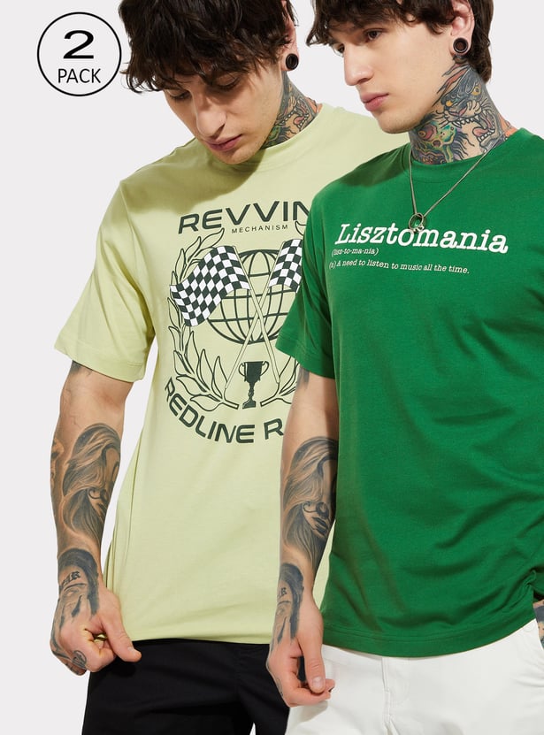 Elevate your casual collection with this pack of 2 printed T-shirts. Designed with a classic crew neck and half sleeves, they bring together everyday comfort and stylish prints for versatile wear.