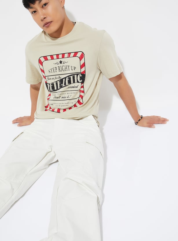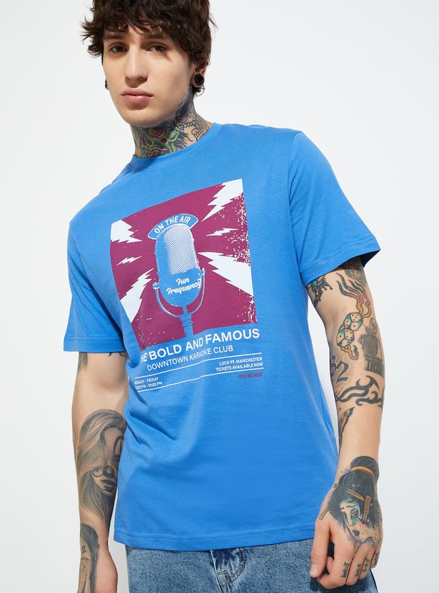 Refresh your everyday wardrobe with this pack of two printed T-shirts, designed with a classic crew neck and comfortable half sleeves. Soft, breathable fabric ensures all-day ease, while versatile prints add a touch of personality to your casual looks.